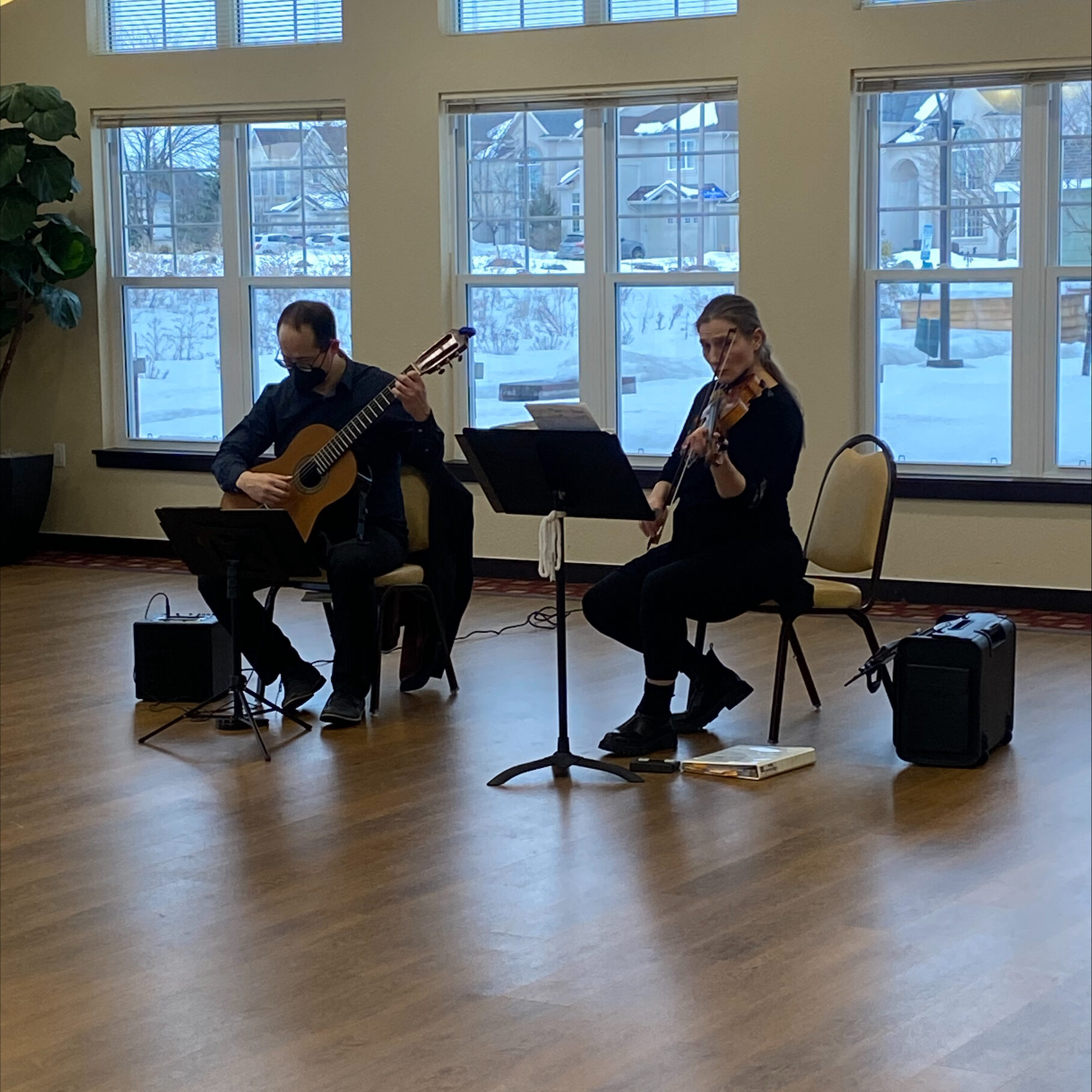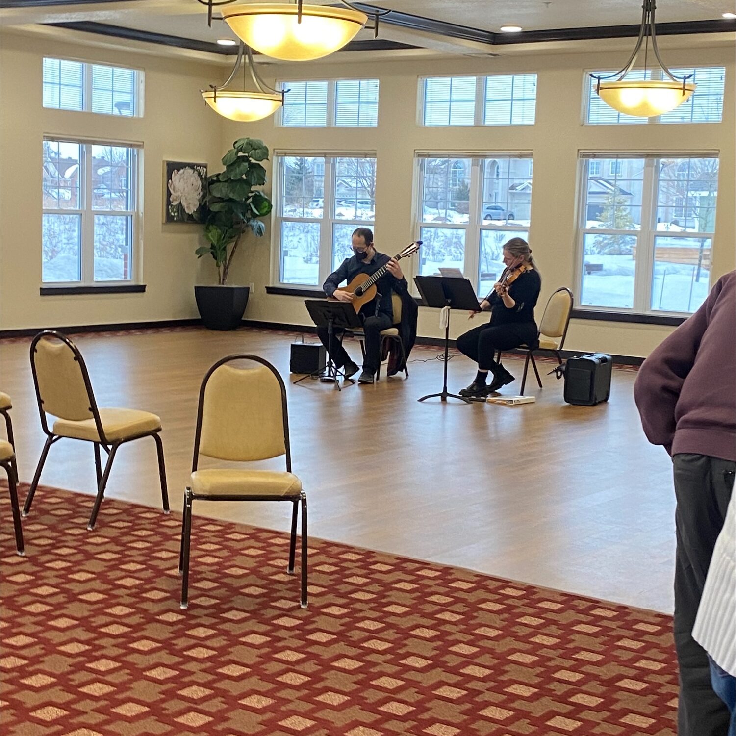 Background Music for Special Occasions. Duo can play quiet ambient music while residents and guests are mingling. Music during dinner is a great option too. Special occasions can include a birthday party, anniversary, retirement and more. Special requests are welcome.