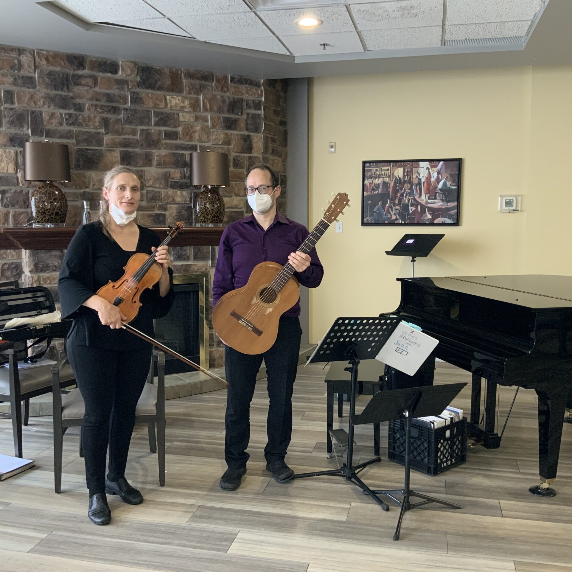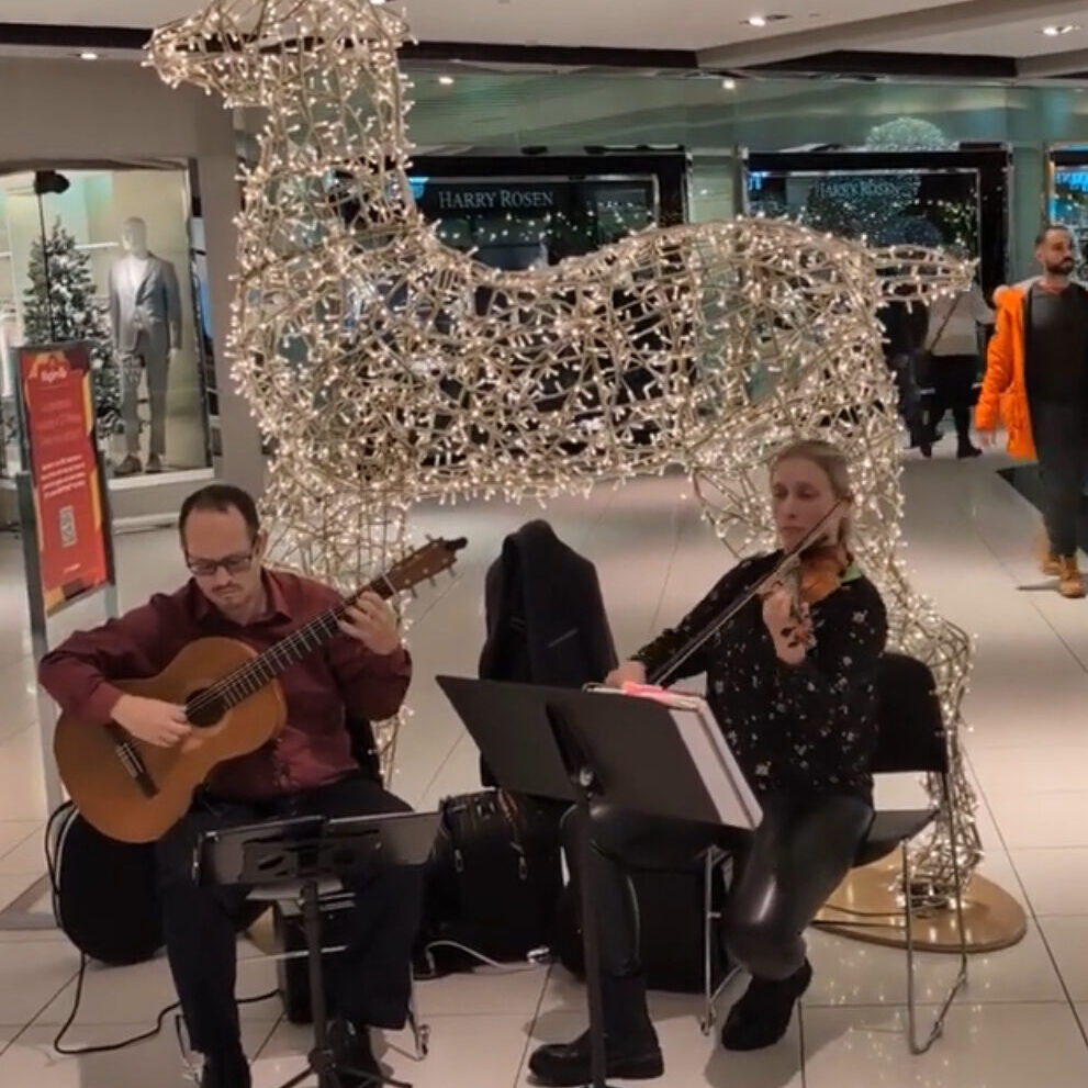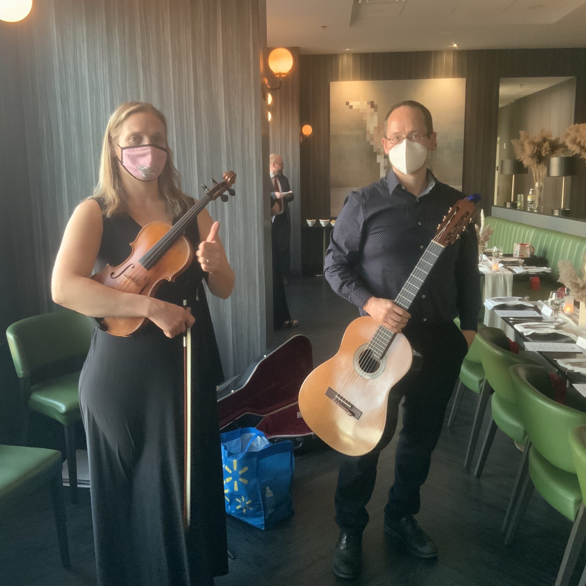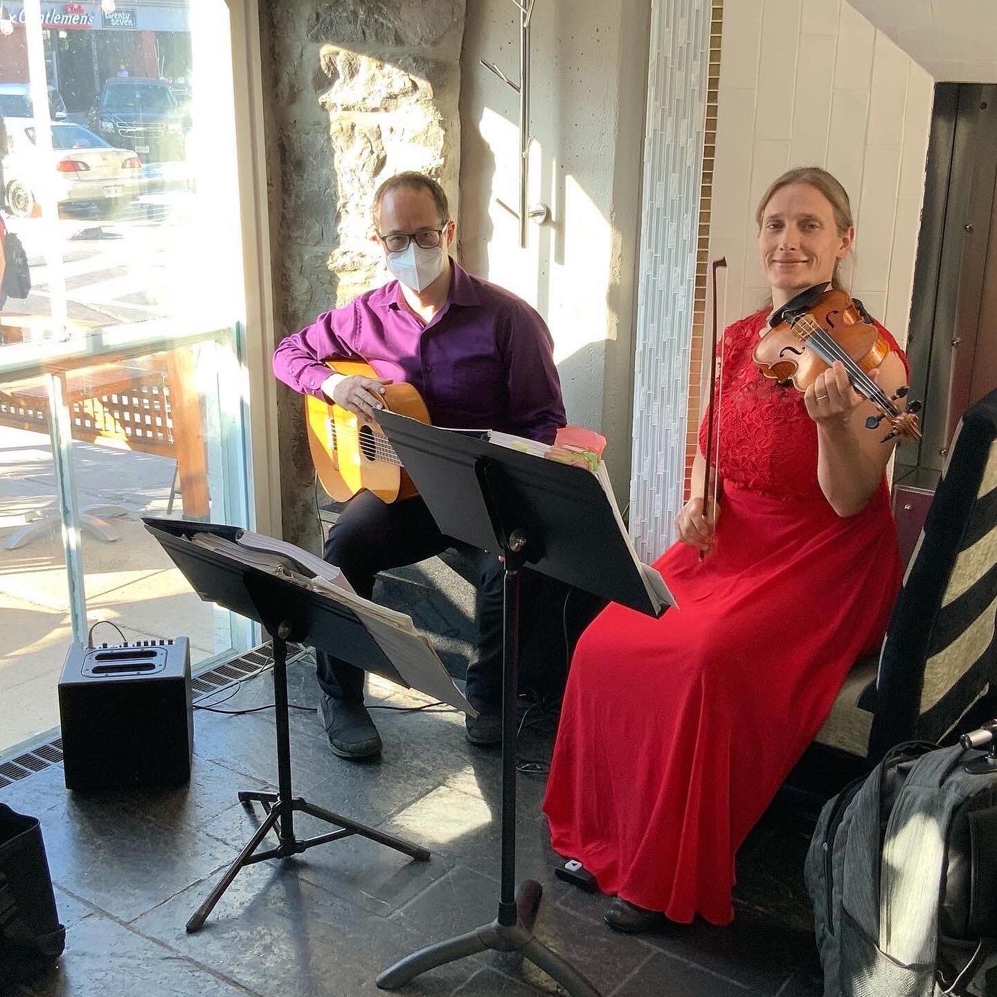 Give yourself a treat and book Duo Pleiades to serenade your friends at any special gathering today! Pick a theme, choose songs from our list and few of your own special requests, or just give us a general idea of styles and names of the bands you’d like to hear, some composers/ songwriters and we’ll make a unique play list just for you. Music will elevate everyone’s spirit, bring joy and create an unforgettable moment for everyone to cherish for years to come. Music styles that Duo Pleiades can perform in can include Classical, Jazz, Latin American (tango, choro, songs, ballads), Italian, popular, Celtic, oldies, seasonal (Christmas, Valentine’s Day, Mother’s Day, Canada Day, Halloween, Remembrance Day), birthday party songs, fiddle tunes (bluegrass).